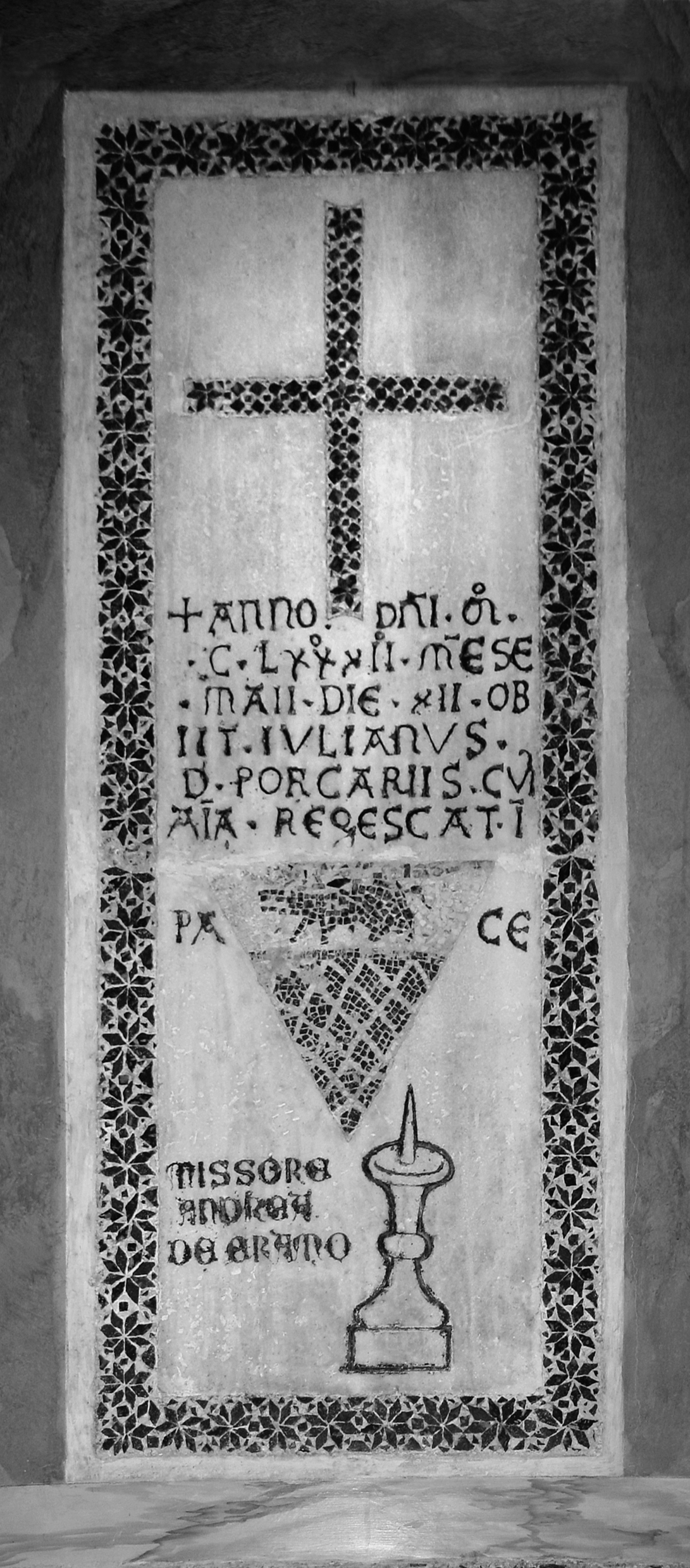 Rom, S. Giovanni della Pigna. Grabstein des Iulianus de Porcariis (Giuliano Porcari). M(C)CLXXXII (Foto Senekovic 2003)