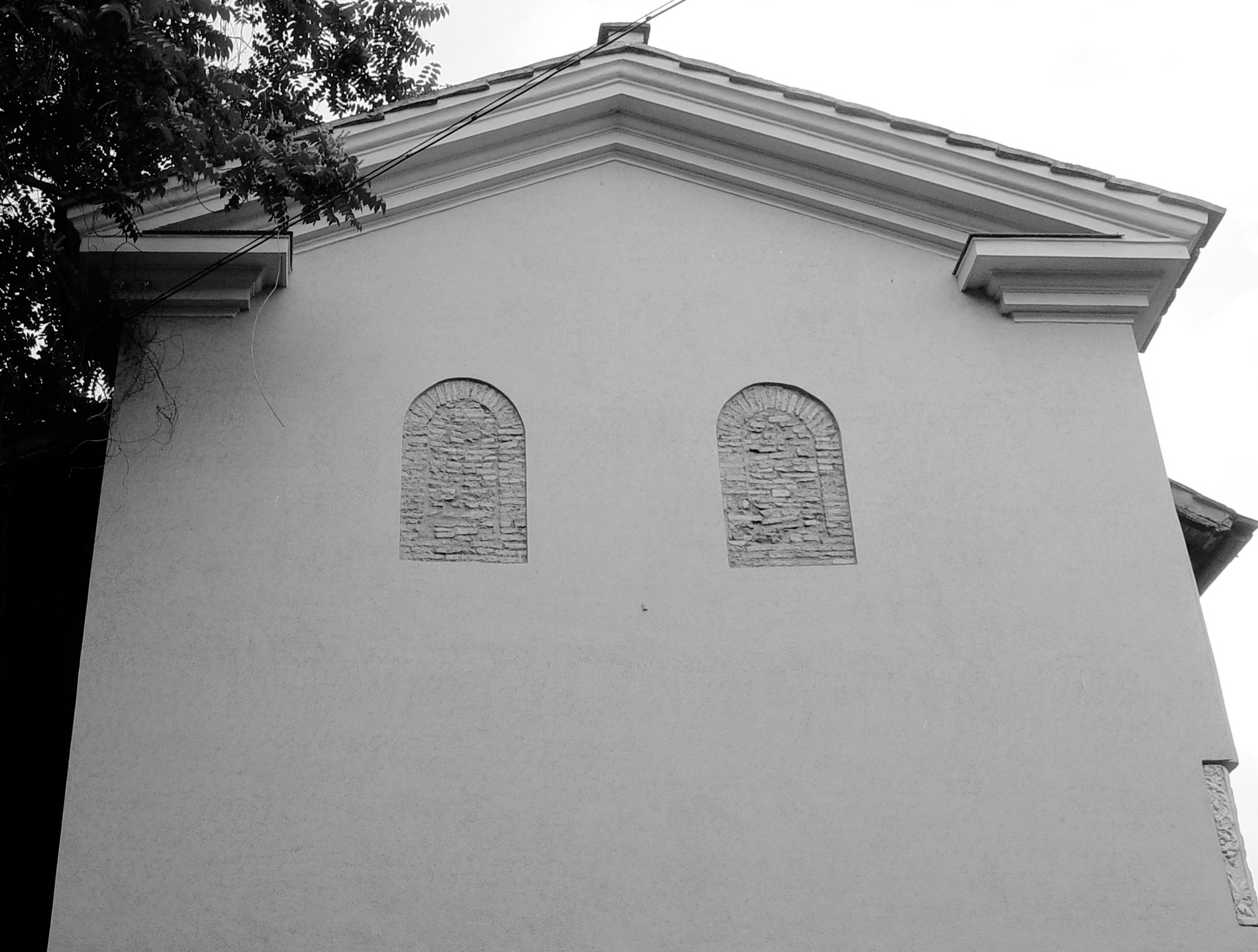 Rom, S. Gregorio al Celio, Mittelalterliche Platte in Giebelform (Anhang III, Nr. 15), heute in Wiederverwendung im Türgiebel des barocken Oratorio di S. Silvia (Foto Senekovic 2002)