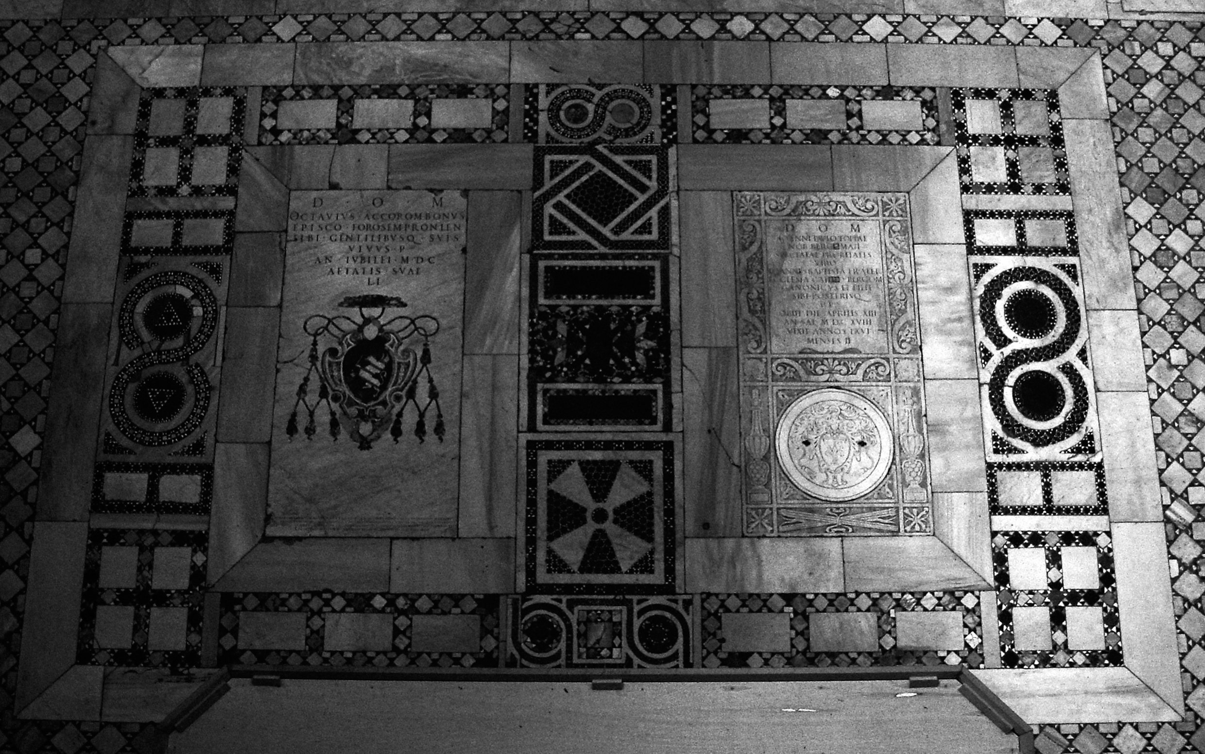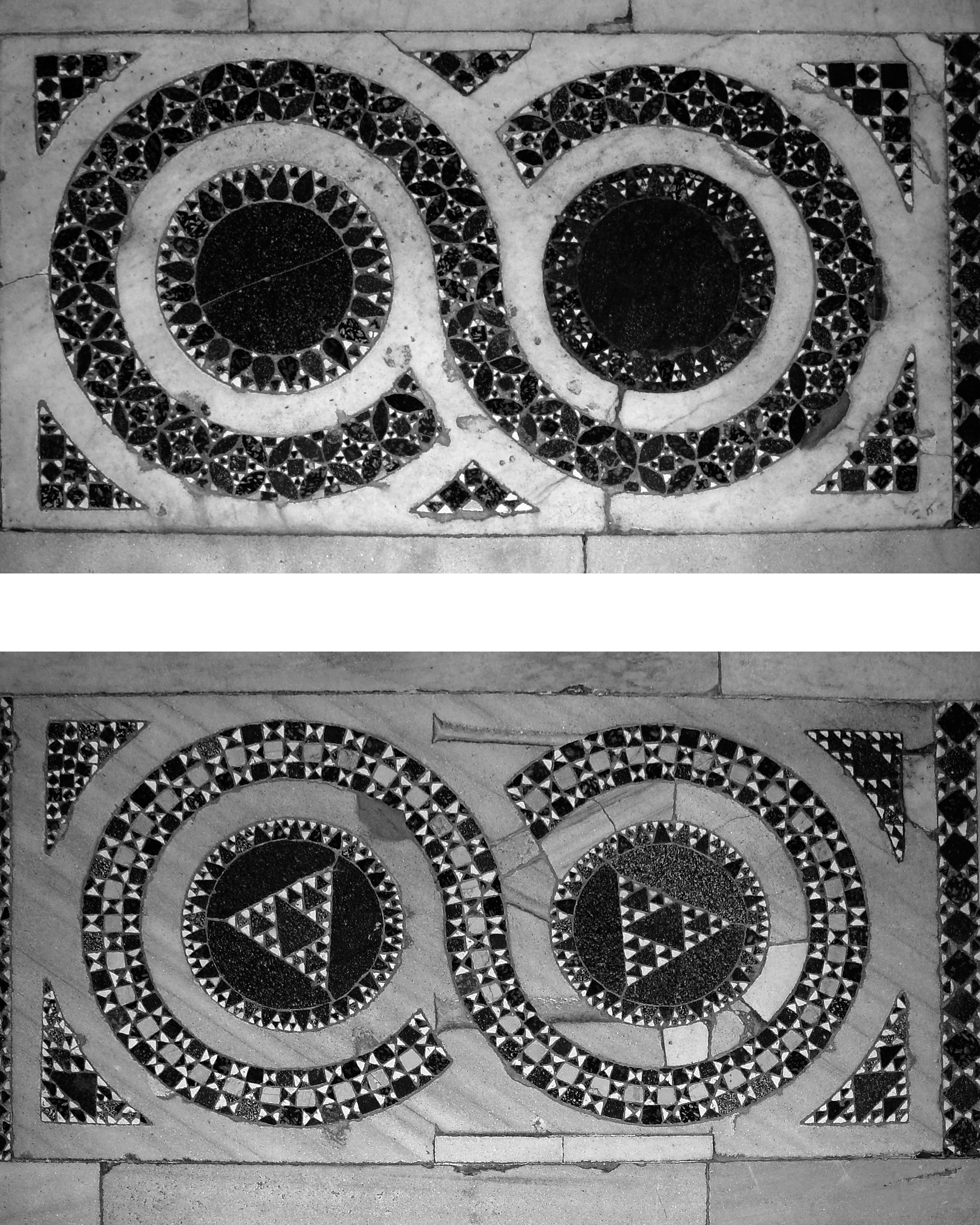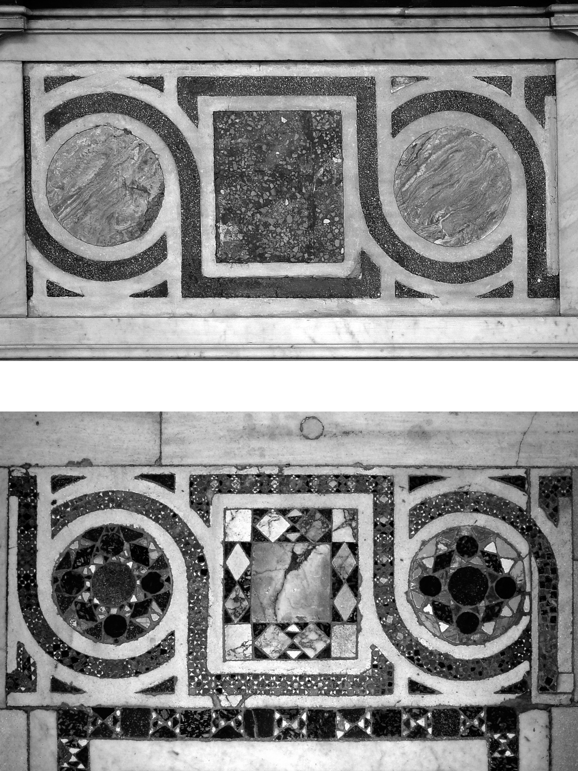 Rom, S. Gregorio al Celio, Mittelalterliche Platten (Anhang III, Nr. 1 u. 2), heute in Wiederverwendung im Paviment des 18. Jahrhunderts (Foto Senekovic 2002)