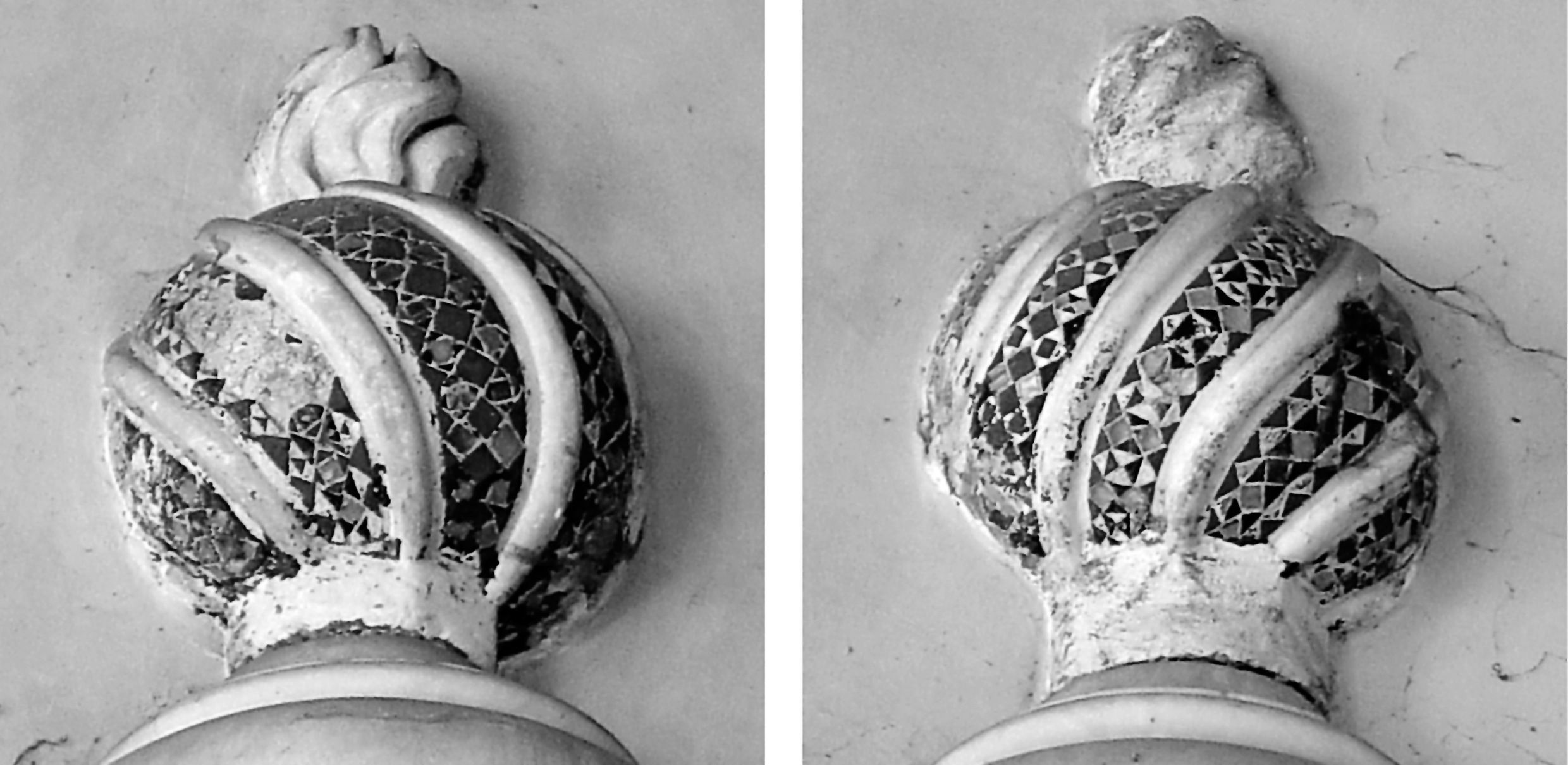 Rom, S. Gregorio al Celio, Mittelalterliche Platten (Anhang III, Nr. 17 u. 18), heute in Wiederverwendung im Atrium der Kirche (oben, Nr. 17) und im Paviment des 18. Jahrhunderts (unten, Nr. 18) (Foto Senekovic 2002)