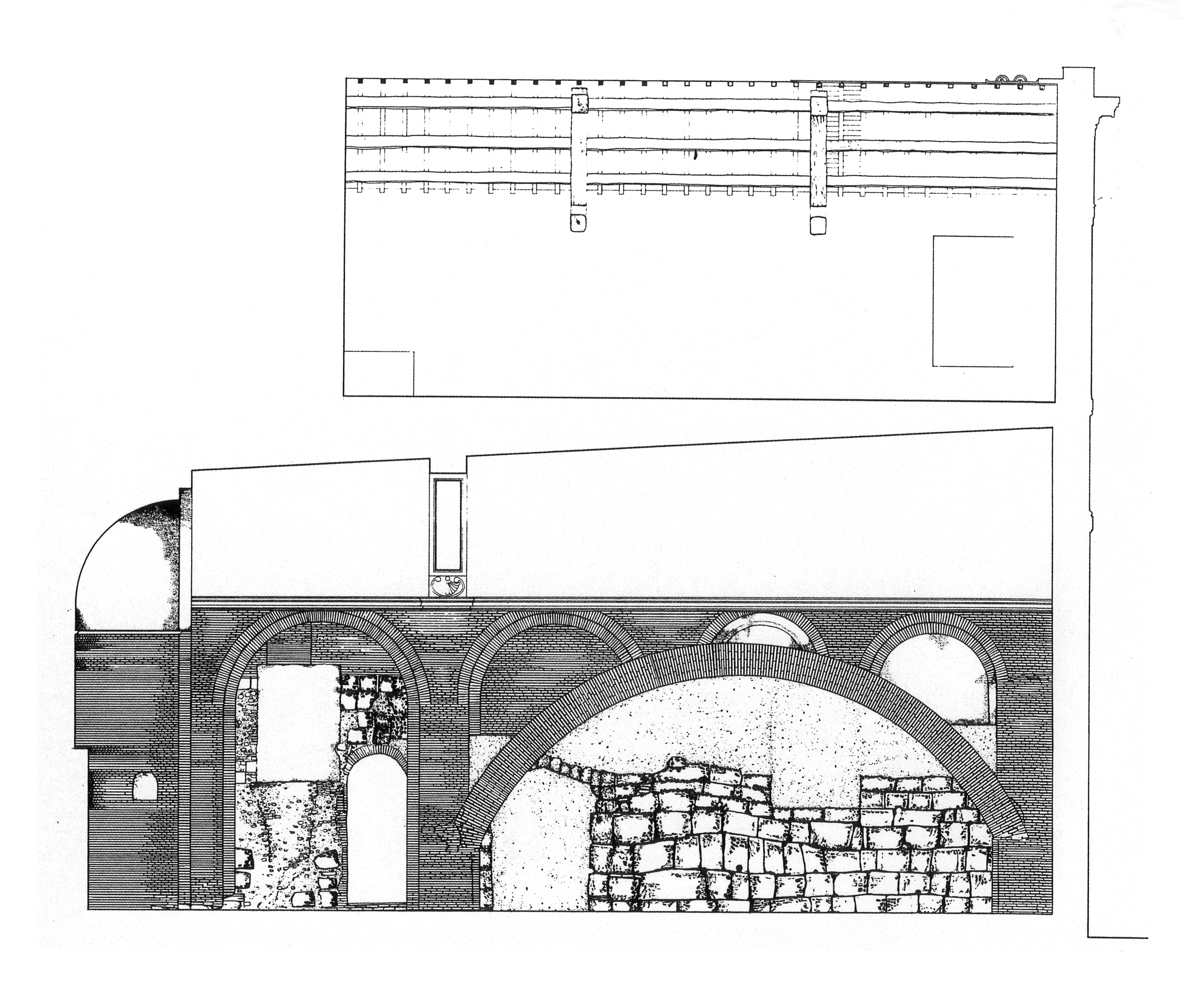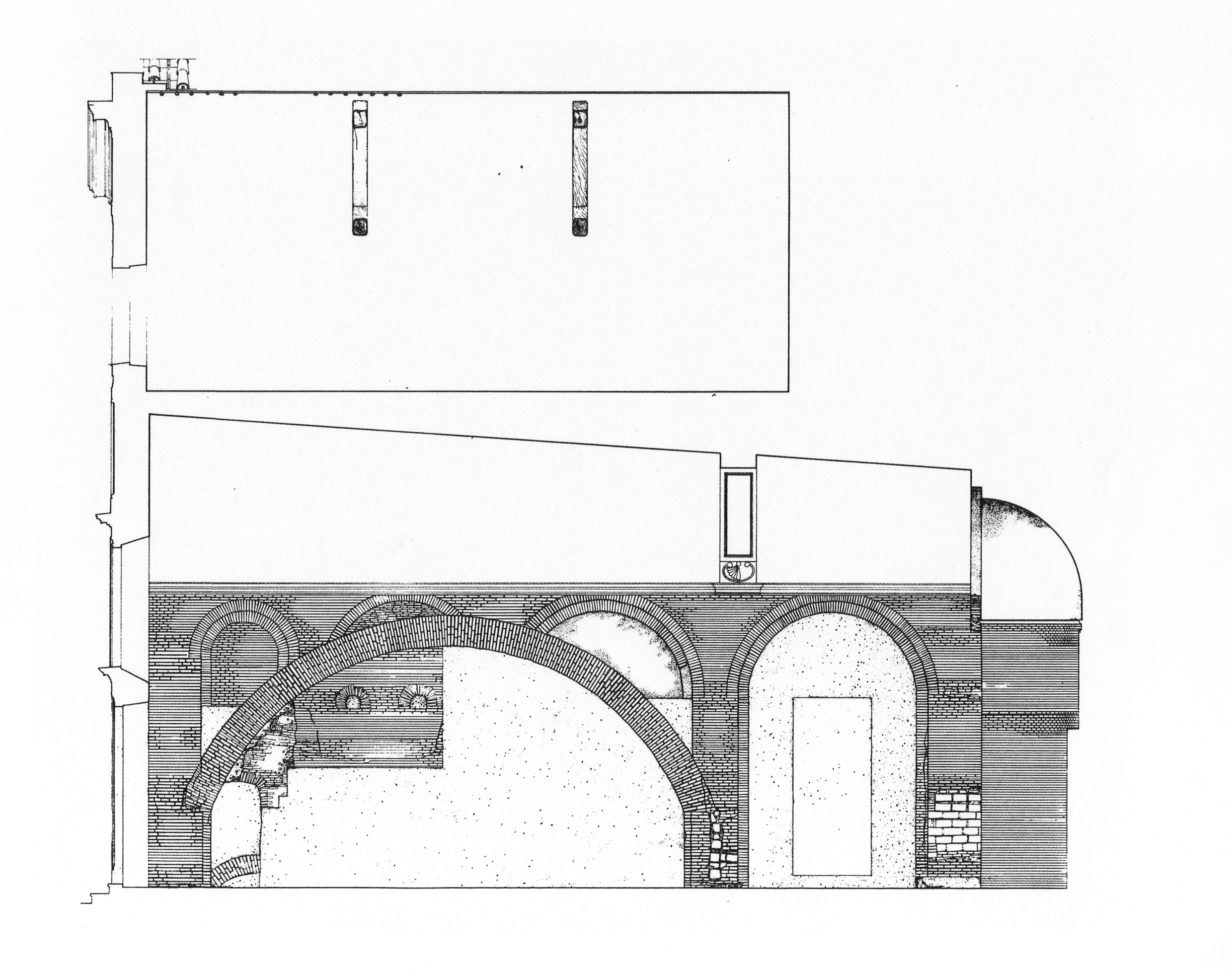 Rom, S. Gregorio Nazianzeno. Mauerwerk der abgetreppten Nischenarkaden an der Nordwand Phase II (Foto Senekovic 2003)