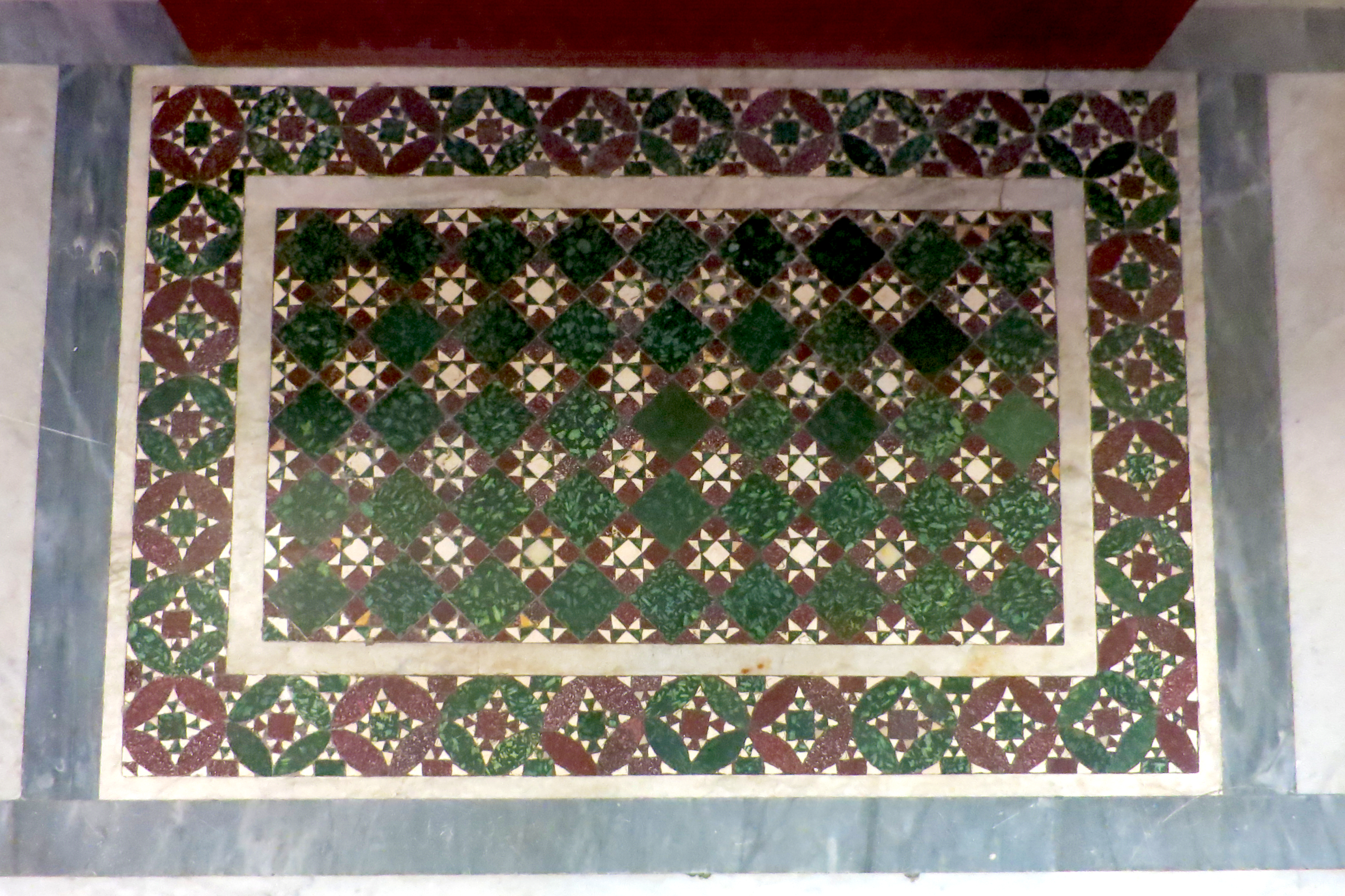 According to Pompeo Ugonio's description of the building in c. 1590, the church had an entrance portico and the interior was divided into three naves; sixteen columns flanked the nave, presumably eight columns with nine arches on each side. In 1179, Pope Alexander III (1159-1181) consecrated a side altar dedicated to Mary. The pavement is given special mention by Ugonio, described as "artful with various stones", but is now lost. Until the 19th century, the design of a labyrinth was preserved in the centre of the floor and, again according to Ugonio, the apse was decorated with post-medieval paintings. To the left of the high altar was the 1295 altar of St Nicholas, donated by Cardinal Jacopo Colonna. What Ugonio saw was perhaps still the 8th century basilica with remnants of what must have been the liturgical furnishings of the High Middle Ages.