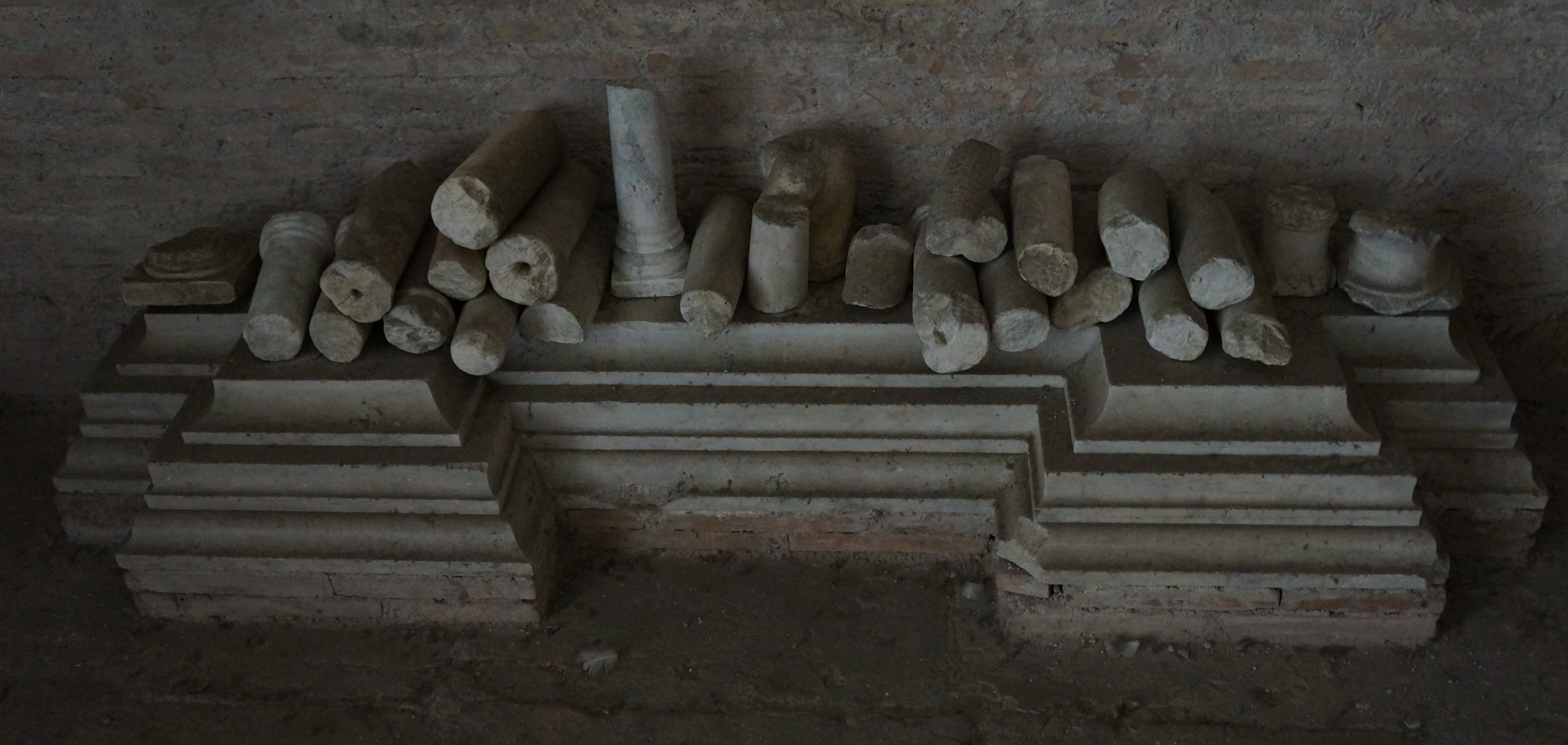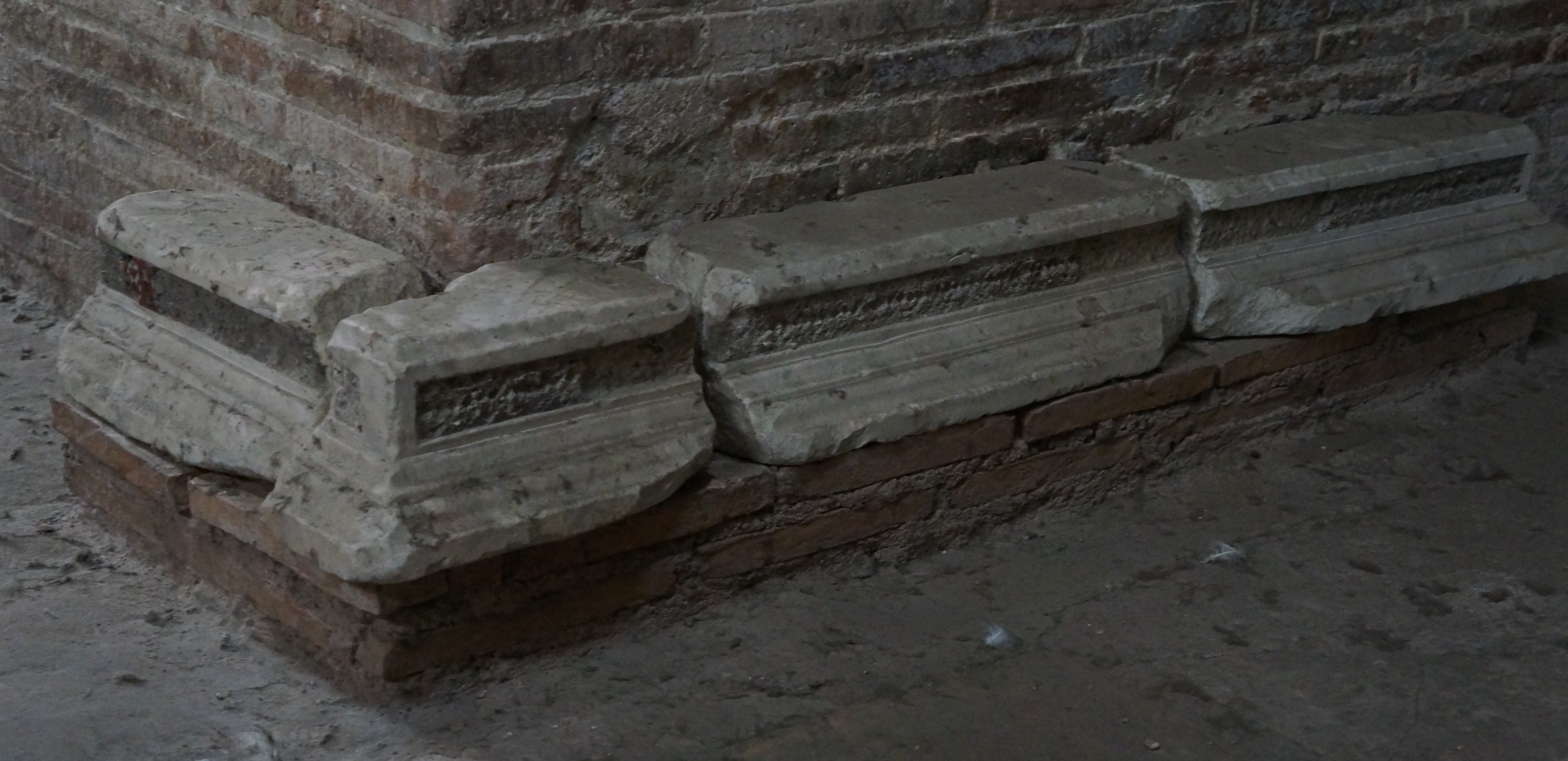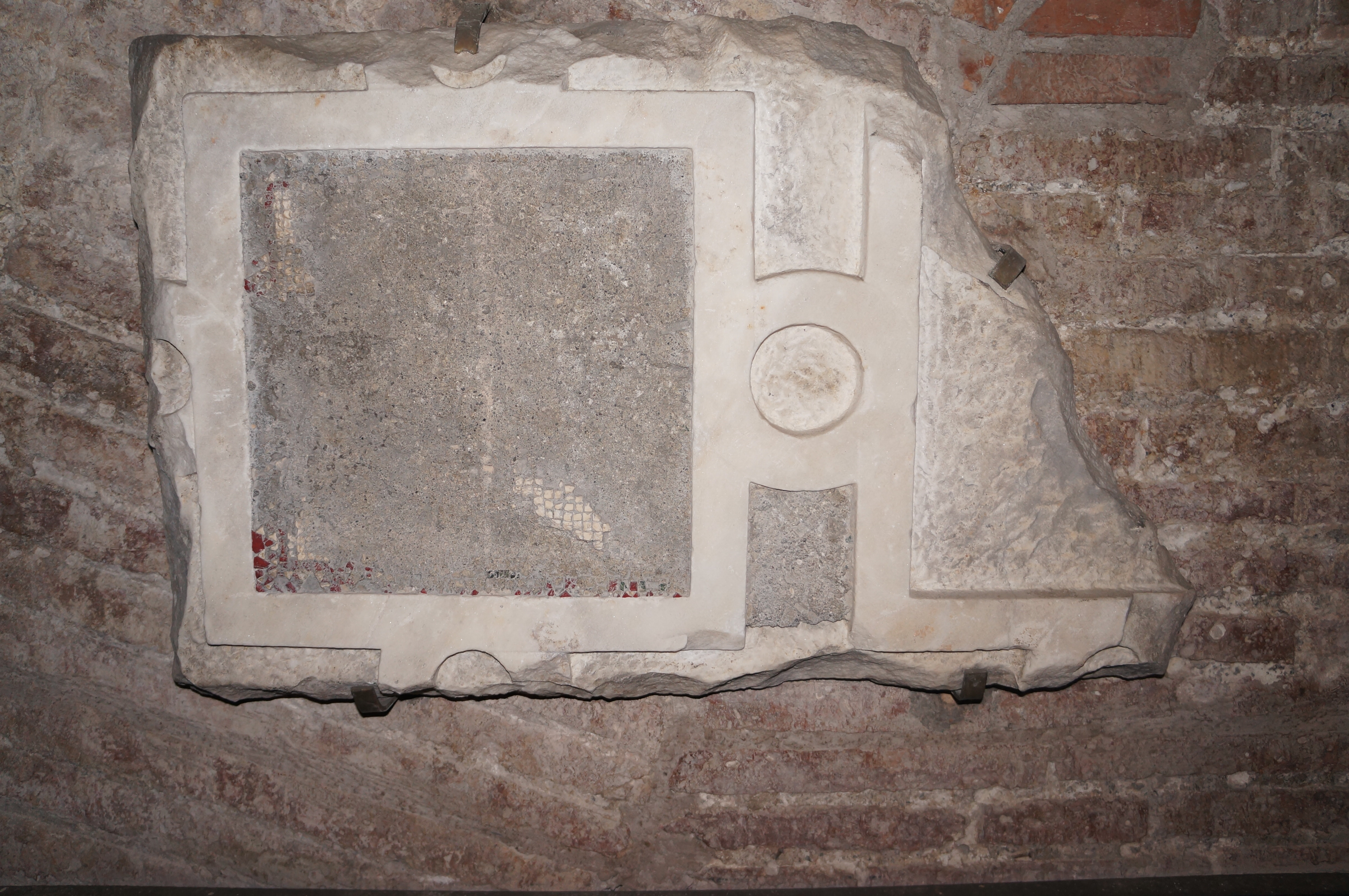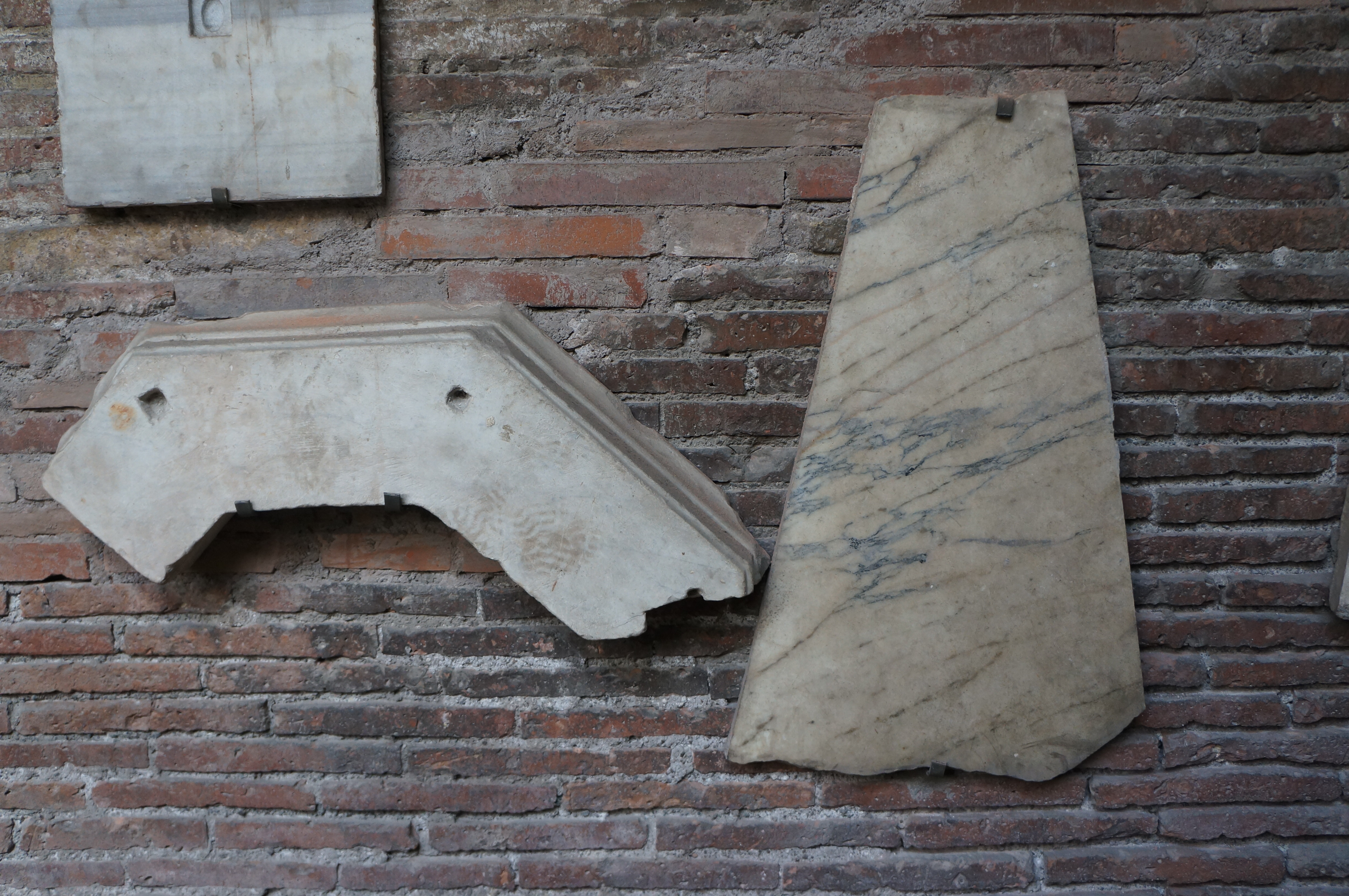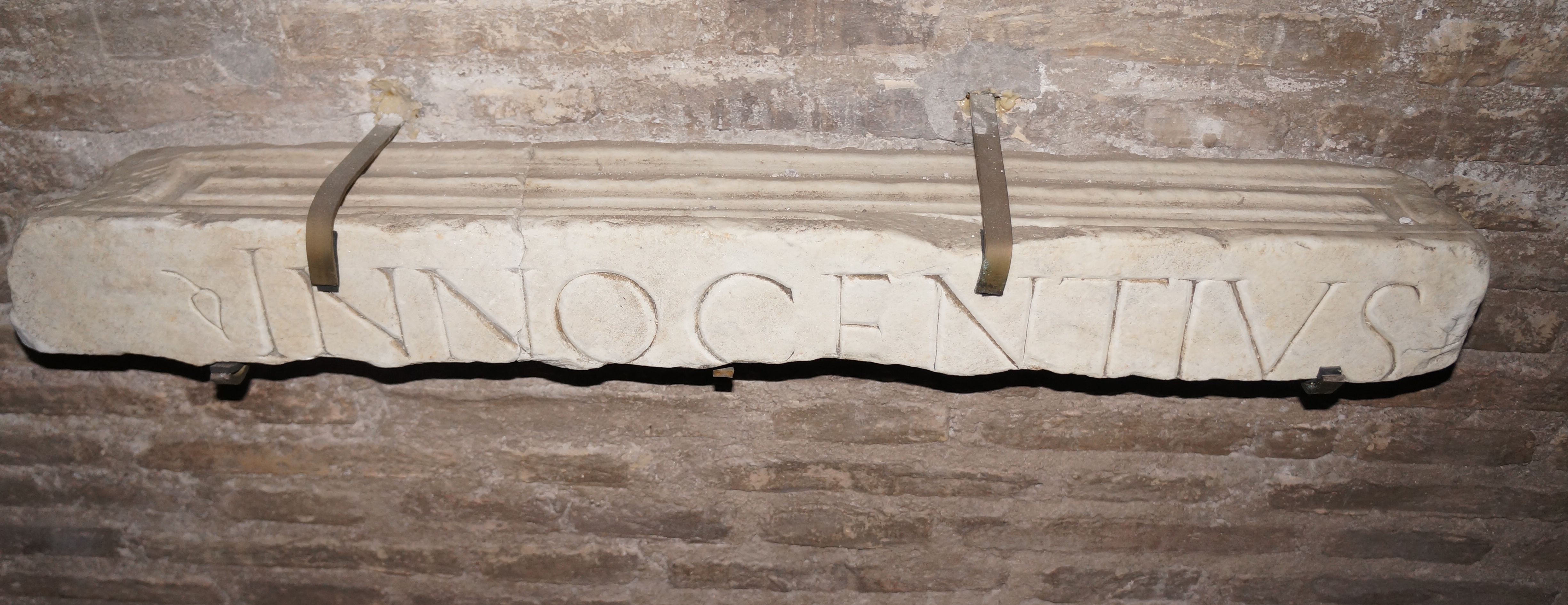 The Pantheon, probably built under Trajan, was consecrated as a church by Pope Boniface IV (608-614), with its round niche facing south used as an apse. Almost none of the furnishings of the early church have survived, apart from the encaustic icon of the Virgin Mary, believed to be a portrait by the hand of St. Luke the Evangelist. The consecration of an altar to St Lawrence under Pope Innocent III is recorded in 1209. In 1270, the canons jointly donated a bell tower and bells, which were erected above the ridge of the roof of the pronaos. During the same period, the interior was probably renovated, of which the altar ciborium is documented in a drawing and in some preserved fragments. The signature of Stephanus Magius with the date 1270, once found in the floor of the presbytery, may be connected to this work. Under Pope Innocent VIII (1484-1492), the presbytery plutei were renewed, re-using 6 porphyry columns from the medieval pergula. In the 17th century, under Popes Urban VIII and Alexander VII, the pronaos was restored by removing the medieval structures and integrating the entablature of the left corner of the portico; the bell tower from 1270 was also demolished. On the attic, two turrets were placed behind the roof of the pronaos, which were in turn demolished in 1883. In 1711, under Pope Clement XI, the ciborium and pergola were removed as part of a Baroque renovation of the liturgical furnishings.