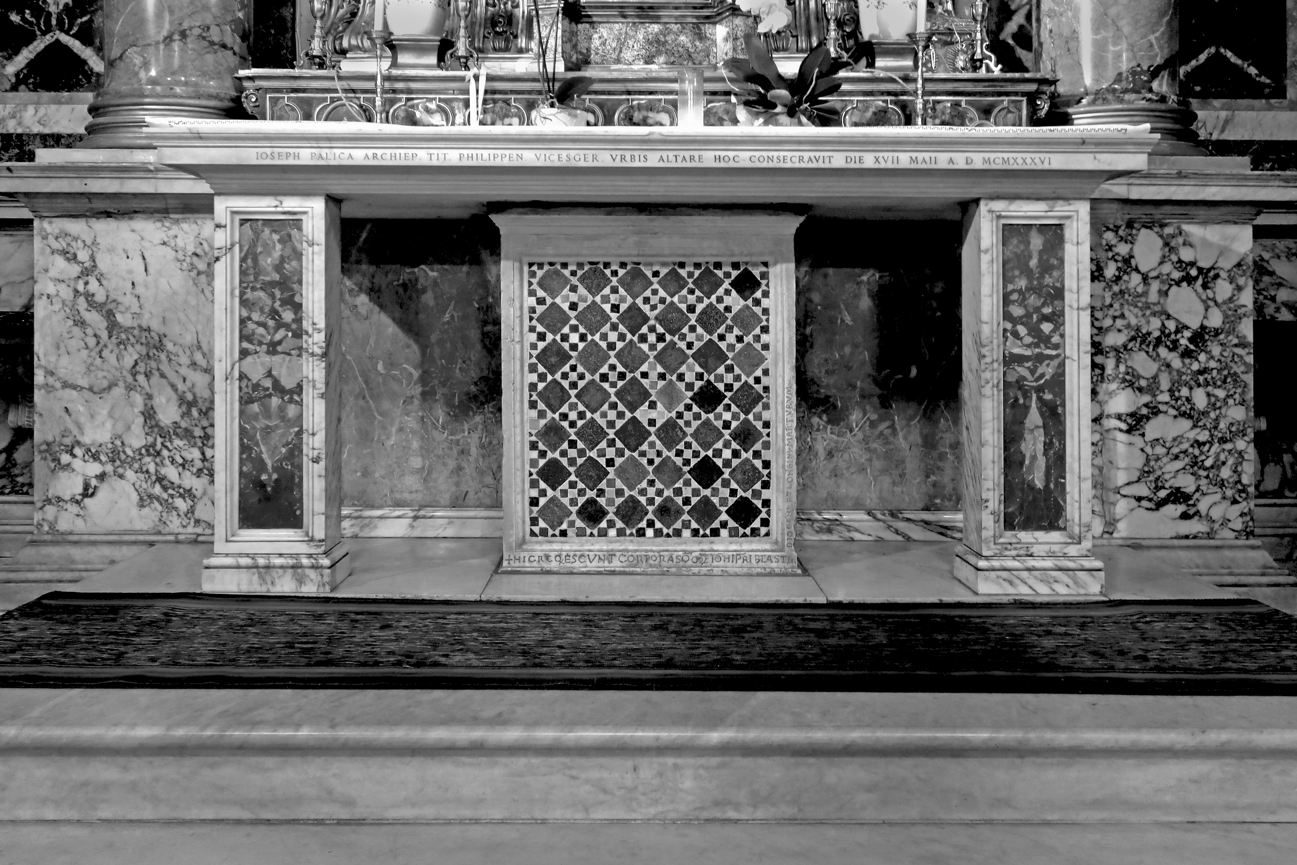 Sotto l’attuale chiesa di S. Marcello ricostruita nel sec. XVI, uno scavo archeologico (1990-2001) ha permesso di individuare la basilica tardoantica con le sue trasformazioni medievali. S. Marcello si trova in un'area urbana in cui si è verificato, dopo l'antichità, un forte innalzamento del livello stradale. Intorno al 1100 il pavimento della chiesa fu rialzato di circa 85 cm e due absidiole furono aggiunte alle estremità delle navatelle. Del nuovo litostrato in opus sectile cosmatesco si sono conservati esigui resti. A questa stessa fase appartiene anche un antico cippo recante sul fronte una decorazione in opus sectile e l’iscrizione menzionante le reliquie dei Santi Giovanni, Blasto, Diogene e Longino. Nella seconda metà del XII sec. la chiesa fu allungata di c. 7 m verso occidente con l’aggiunta di un transetto con un’abside sull’asse centrale, mentre due absidi più piccole furono erette alle estremità sud e nord del transetto. Il livello del pavimento del nuovo transetto era di circa 140-170 cm più alto di quello della navata. Altri arredi che ci si aspetterebbero in una chiesa del XII secolo, come una schola cantorum o un ciborio d'altare, non sono documentati, anche se la loro esistenza è probabile. Un'ultima fase di costruzione, poco documentata, ebbe luogo alla fine del XV secolo. Un grande incendio nel 1519 distrusse quasi completamente quella che era la chiesa tardoantica. Il nuovo edificio, a navata unica con cappelle laterali, ricevette una nuova facciata rivolta verso la via Lata e una nuova abside a est; fu quindi ruotato di 180° rispetto alla chiesa precedente. Questo edificio nella sua facies settecentesca, con una facciata barocca del XVII secolo, si è conservato fino ai giorni nostri.